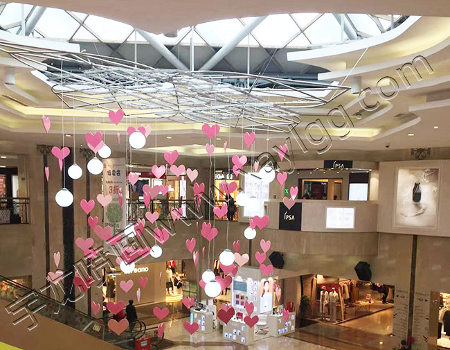 好的美陳能夠與商場環(huán)境、購物中心的定位相互之間完美融合,似有若無,寧靜愜意,在商場的環(huán)境里一點(diǎn)不顯示突兀,可以在欣賞的同時(shí)帶給人愉悅的心情。商業(yè)美陳的目的在于營造愉悅的購物范圍,為商場的商業(yè)服務(wù)。重心是突出商場,讓人在愉悅中購物,為商場帶來客流量與商場的商業(yè)帶來盈利。